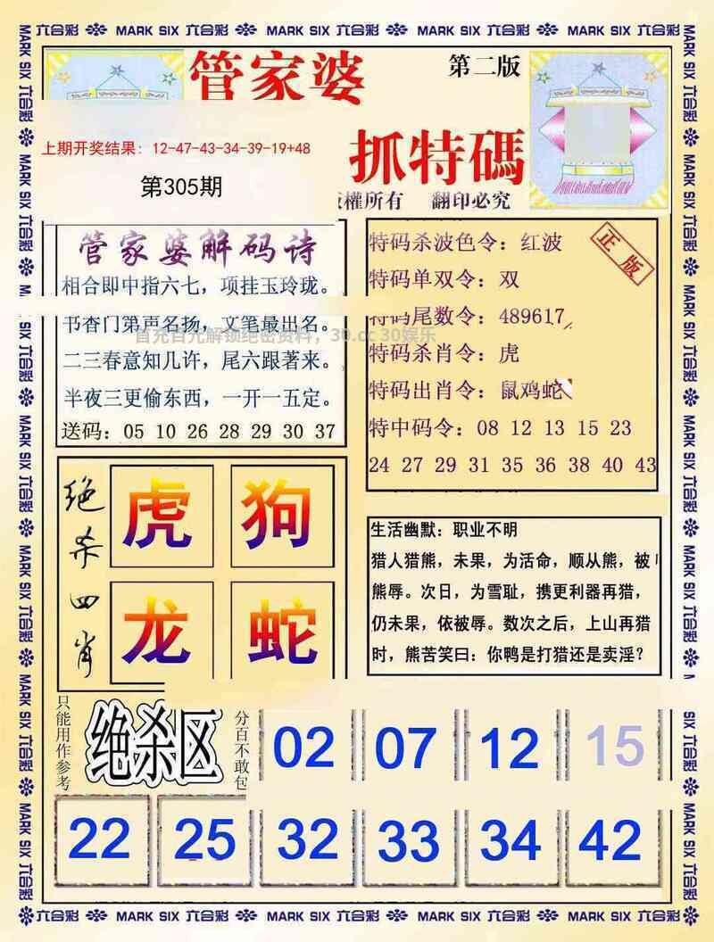 309期:中特两句经/管家婆玄机/龙仔凑热闹/彩霸王出肖料/狗不理