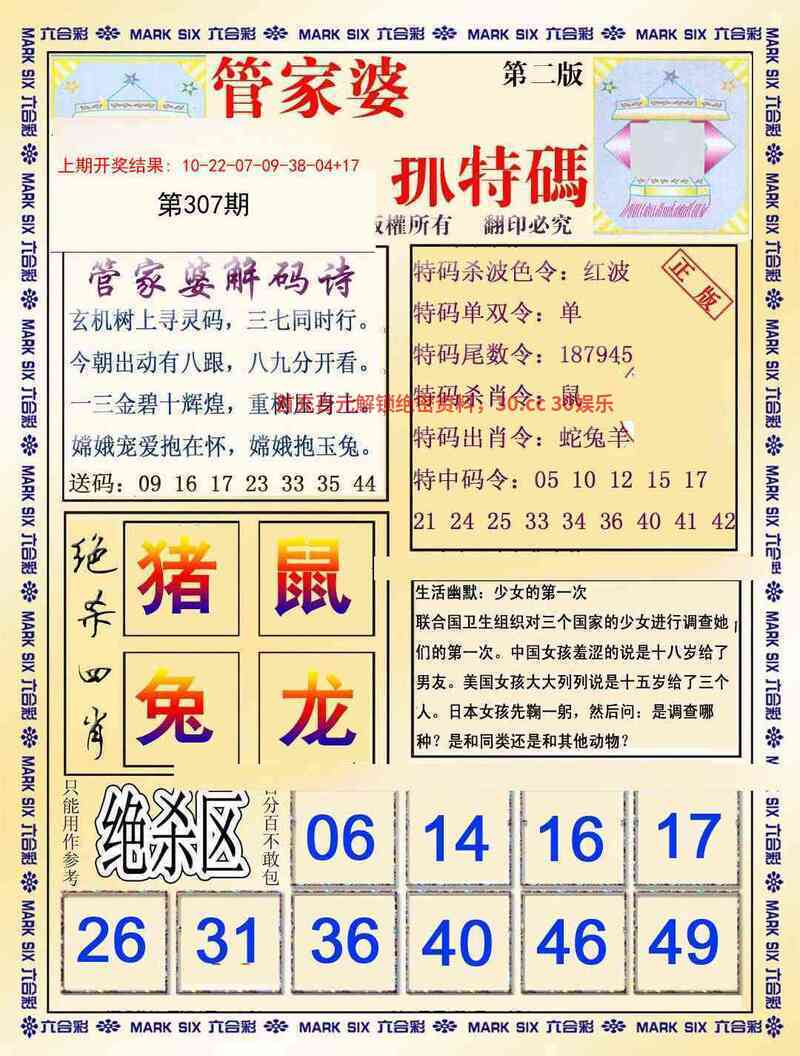309期:必中天机/特七决/正版欲钱料/特码生肖诗/澳门天机诗